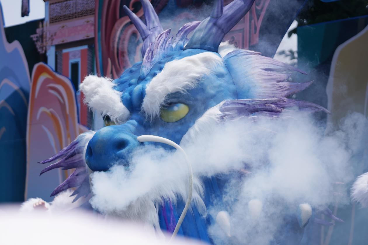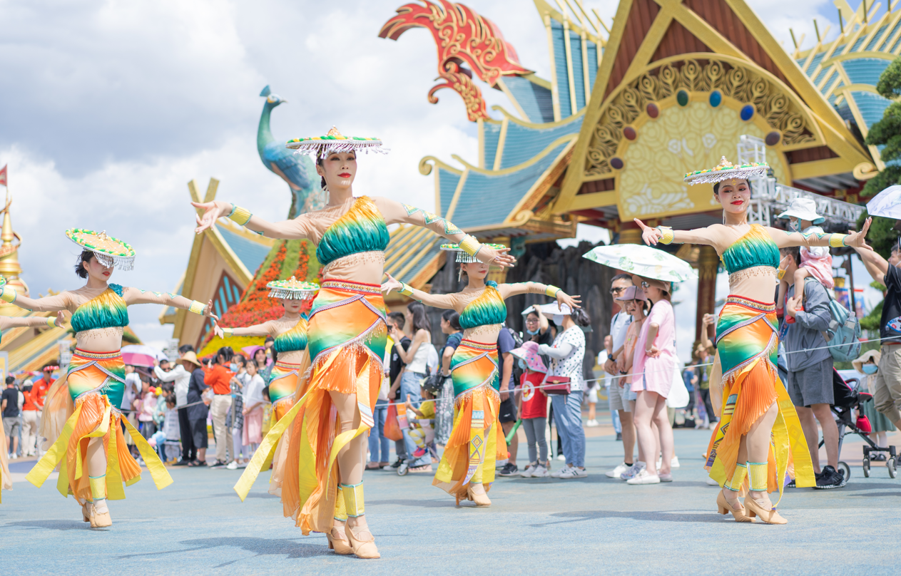 欢乐的音浪高潮迭起,巨型吉祥物奇翼虎携古滇各大特色方阵,带来犹如穿梭在云南少数民族风情与古滇特色文化氛围浓郁的超长行进式演艺……五一期间《幻彩滇池烟花秀》惊艳回归,每晚闭园时华美绽放,与身边人共赏此时滇畔星空璀璨无边!