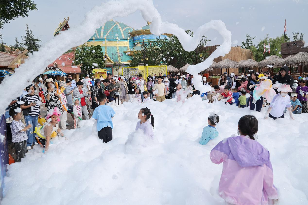 萌萌小丑花式变出造型各异的泡泡,幸运的小朋友还能体验被巨型泡泡包裹的梦幻体验!惊喜之外,大型泡泡机喷出漫天绵密泡泡,蓝天白云下,现场秒变户外超大“泡泡浴场”,小朋友迫不及待进去撒欢儿,发挥想象力堆出各种各样的泡泡造型!