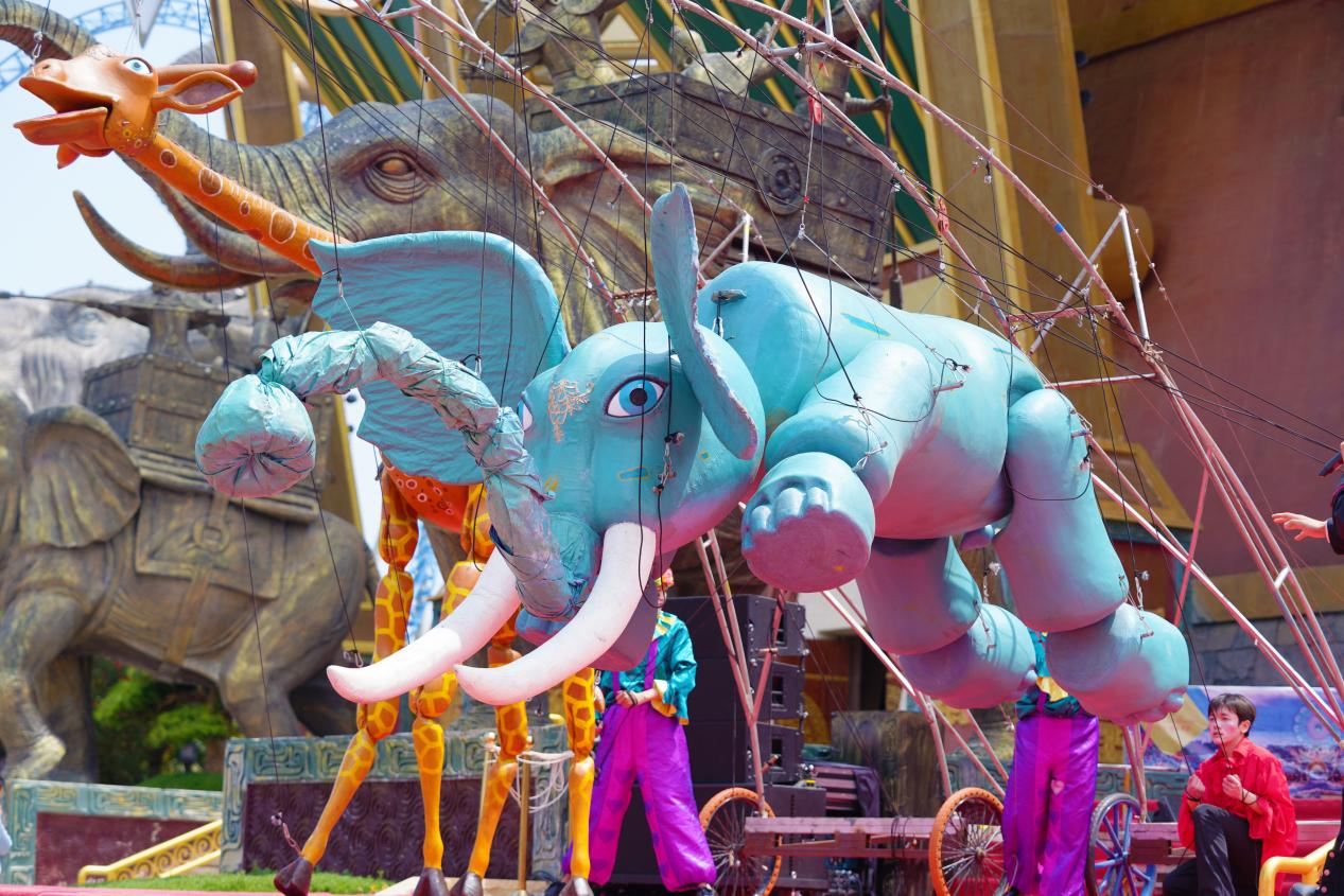 8.7米高巨型机械木偶,守护童心上演温暖童话 震撼又有趣!会飞的蓝色大象、喜欢唱歌的长颈鹿、外表凶猛但内心善良的狮子、滑稽大力士……纷纷出动,由波兰著名的木偶剧团——诊所剧团授权IP、山东省话剧院创意汇演的巨型机械木偶儿童剧《塔拉蹦吧》也来到了七彩云南欢乐世界。