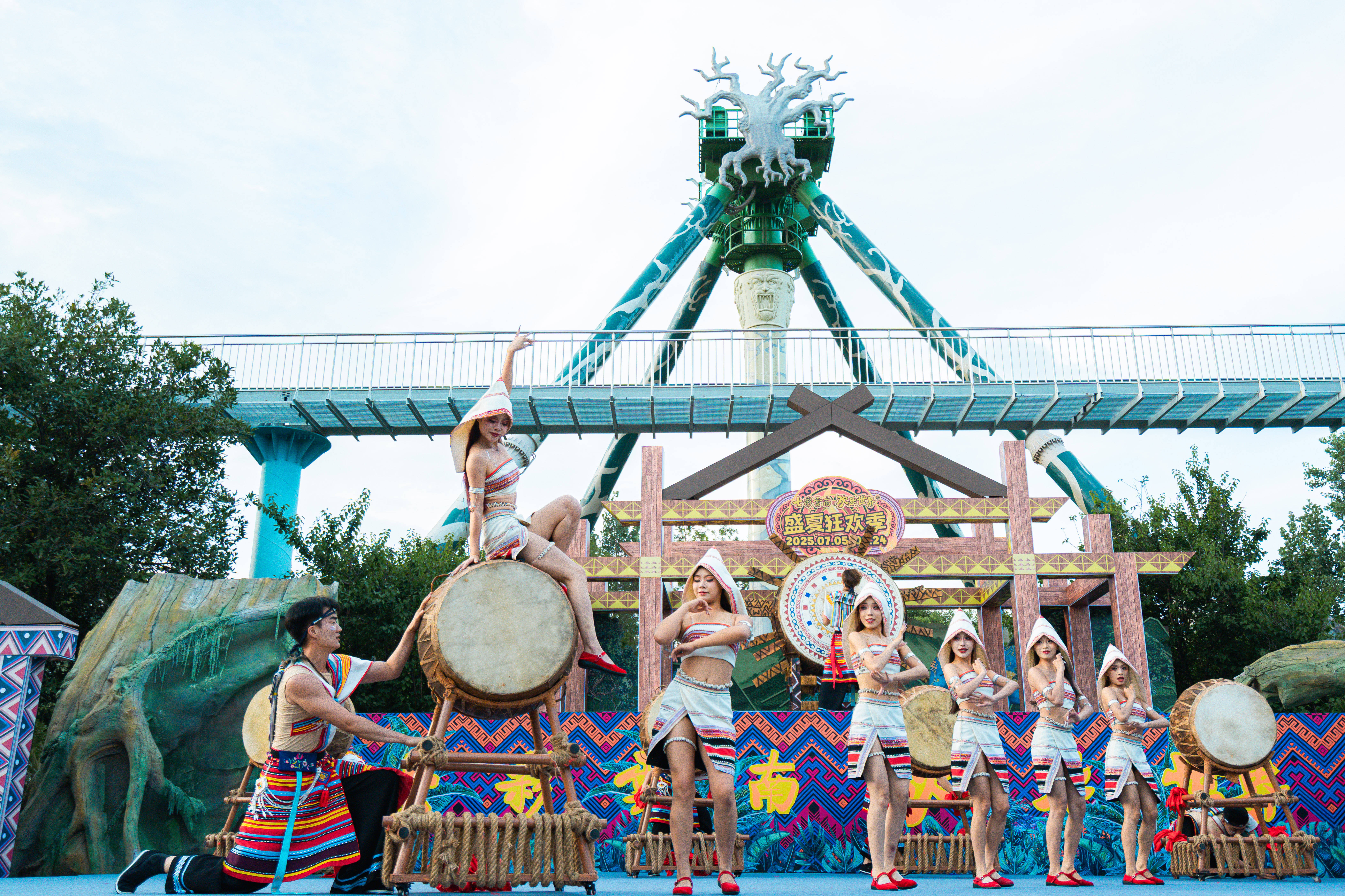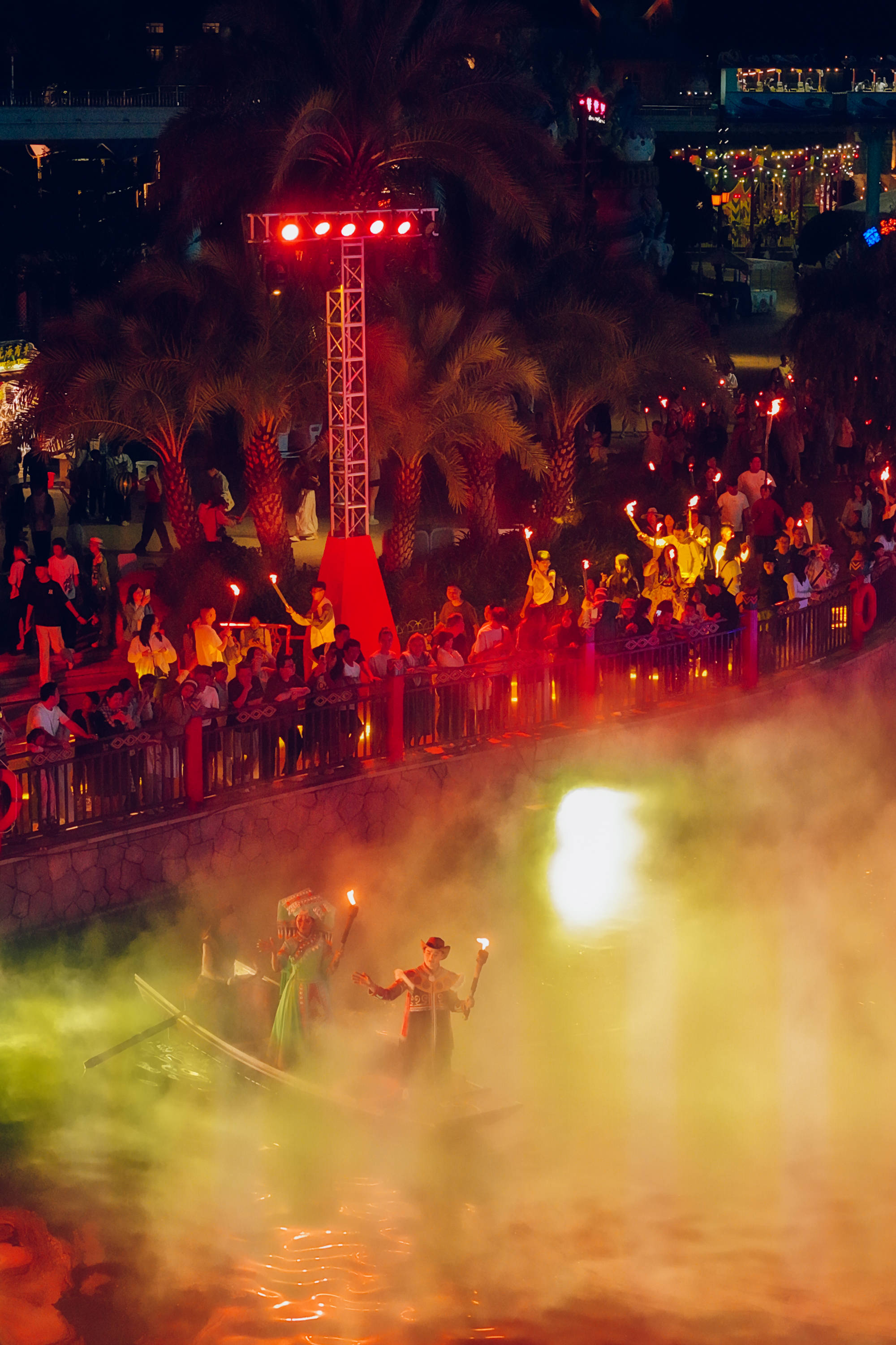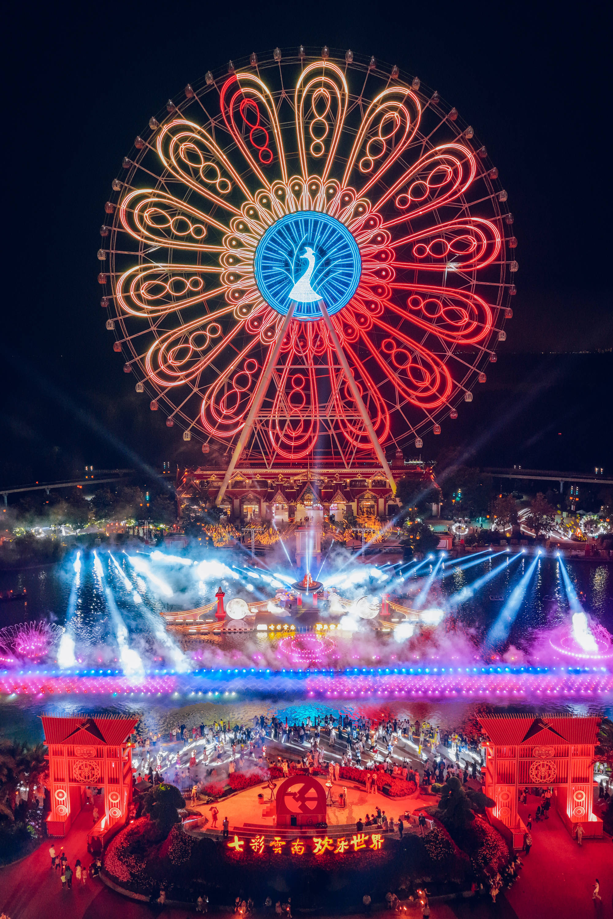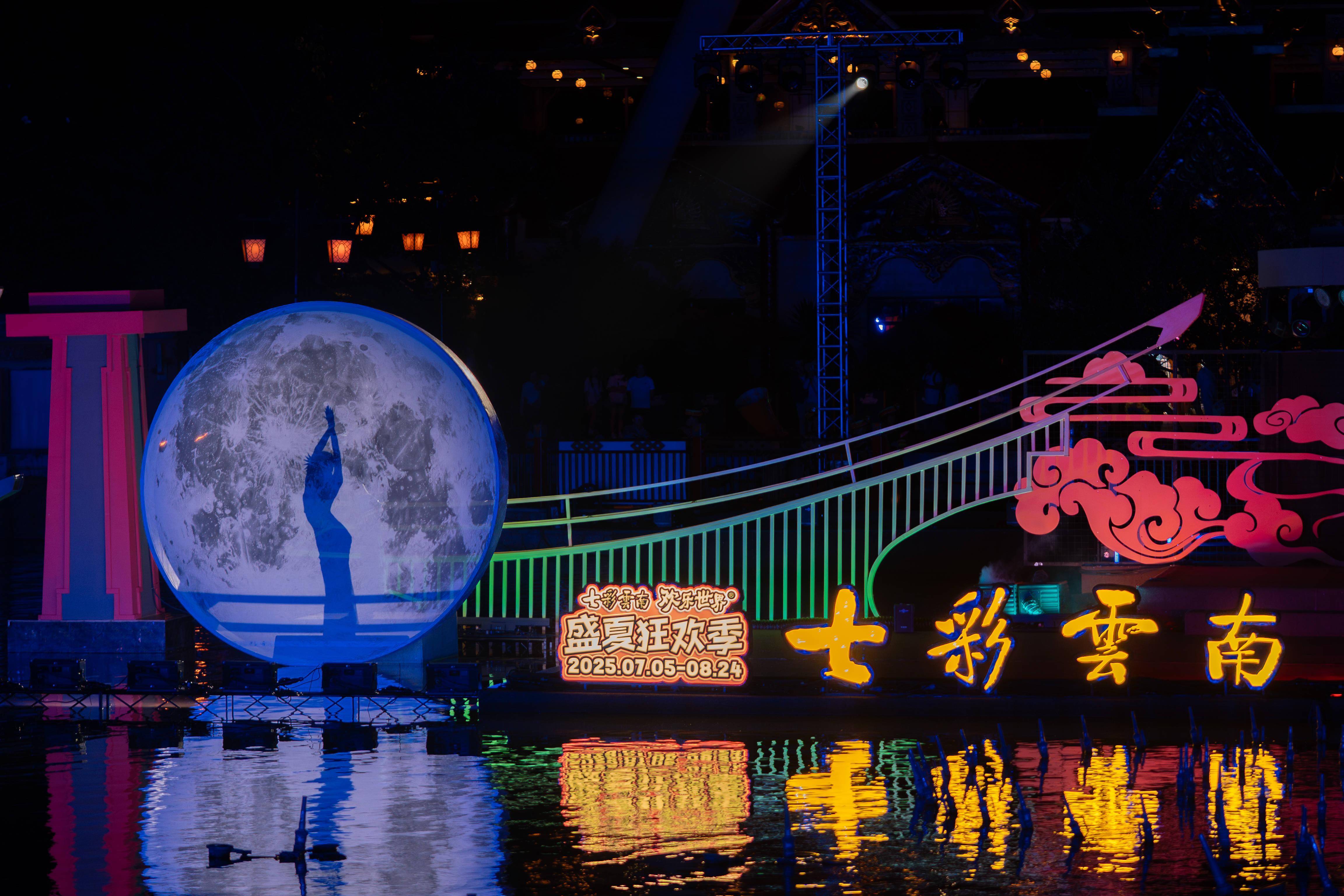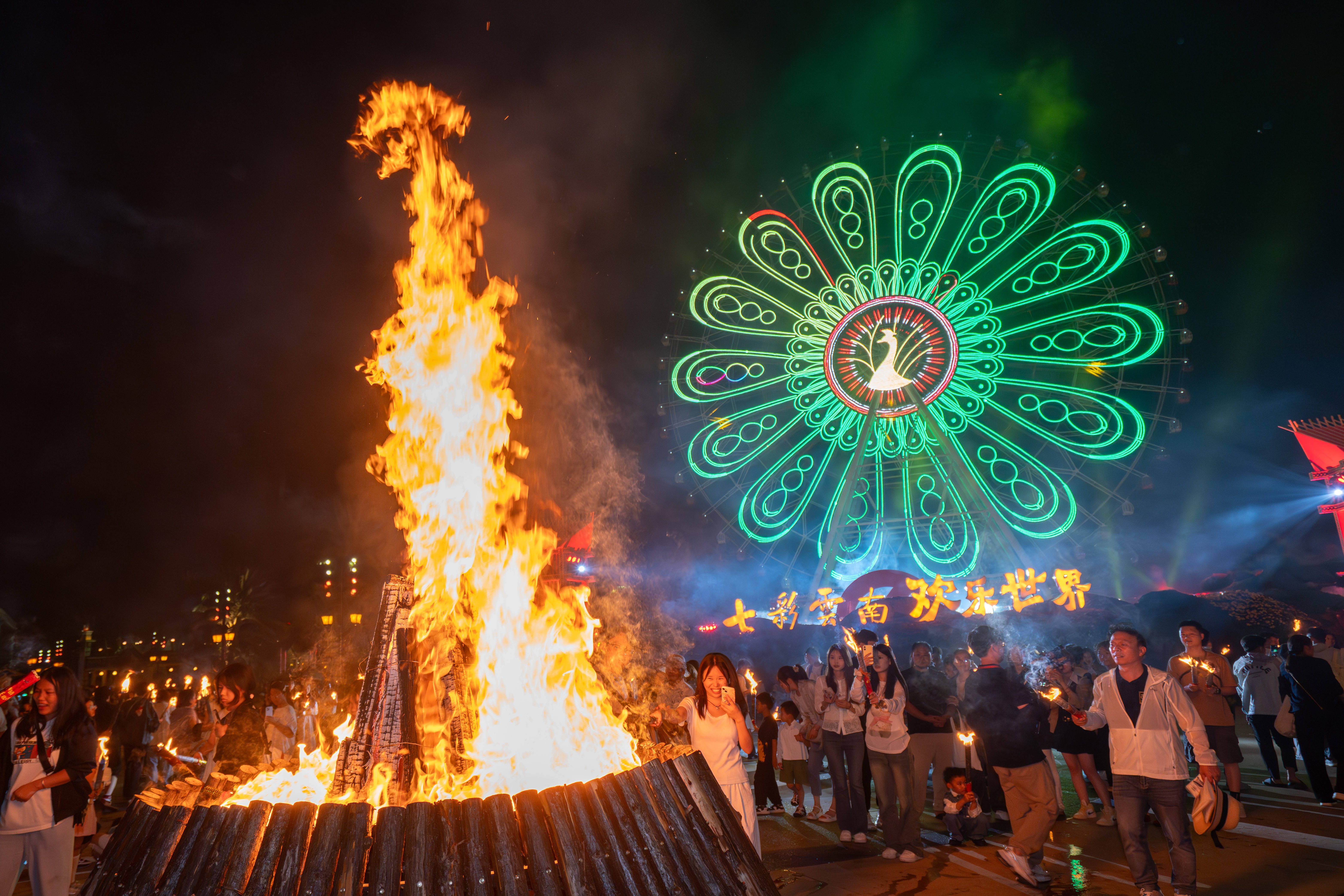 2025年7月18日,一年一度的火把节如期到来。夜幕笼罩下的七彩云南欢乐世界火光熠熠,在火把节当天便吸引了数万名游客前来,共同在篝火与少数民族的热情氛围中感受浓郁的民族风情。 火把节,作为彝族、白族、纳西族、基诺族等多个少数民族古老的传统节日,拥有着深厚的文化底蕴,蜚声海内外,被誉为 “东方的狂欢节”。其起源说法众多,但都体现了各民族对美好生活的向往与追求 。作为云南夏季最具代表性的民俗庆典,本次火把节以 “天天泼水节 夜夜火把节” 为核心主题,巧妙地将传统节庆与实景演艺相结合,精心打造篝火狂欢与水上特色演出双体验,联动各云南少数民族常态演出,打造云南民族演艺之城。 水上演艺:《火舞彩云南》绽放视听盛宴 作为本次七彩云南欢乐世界火把节极具特色的内容,大型水上演艺秀《火舞彩云南》每晚 20:30 在昆明湖准时上演。依托于湖面打造的水上舞台,完美地将火把节热烈的氛围与湖水灵动的特质融合在一起,深刻诠释着火把节起源中对火的崇拜。 演出开篇,伴随着彝族古曲那神秘而悠扬的旋律,舞者乘船而出,手中火把映照在水面上星星点点,舞台上的舞者们倾尽热情,呈现出震撼人心的“水火共舞”场景,恰似远古时期人们对火与自然力量的敬畏与探索。岸边同步亮起千盏火把,形成“陆上火龙绕湖,水中火船竞渡”的壮观画面,寓意着各民族传承着火把节的火种,共同迎接美好生活。 篝火燃情:万人围湖共赴民俗之约 在水上舞台的民族表演结束后,便开始了热闹的篝火打跳活动。当主火炬被岸边的身着民族服饰的小哥用火箭点燃的那一刻,全场瞬间爆发出震耳欲聋的欢呼声,烈焰从巨型圆形篝火堆中腾空而起,数米高的火苗在晚风中肆意摇曳,将周围游客的脸庞映照得通红,寓意着驱走黑暗与不祥。 在上百名身着云南各少数民族传统服饰的领舞演员热情洋溢的号召下,游客们纷纷踊跃加入篝火打跳队伍。彝族大三弦奏响欢快激昂的旋律,大家手举火把,整齐地踩着节拍,跳起欢快的舞蹈,在熊熊火光的映照下,尽情感受少数民族的奔放与豪迈,如同先辈们战胜困难、庆祝胜利时那般欢腾。 演艺之城:常态演出解码民族文化 七彩云南欢乐世界深度融合云南 25 个少数民族文化精髓,在整个盛夏狂欢季(2025年7月5日至2025年8月24日)期间,以民族节庆的常态化展演衍生出三大重点“天天泼水节”“夜夜火把节”“云南民族演艺之城”,打造“一日看遍七彩云南”的沉浸式演艺,让游客在一日之内尽览七彩云南的万千风情。 正门前广场的《团结欢歌迎宾舞》以欢快旋律迎接游客,恰似各民族在火把节相聚,共同传承节日文化;洪荒秘境广场的《基诺山的回响》,通过原生歌舞展现基诺族对神灵、祖先的崇拜,其中或许也蕴含着火把节起源里对自然力量敬畏的影子;万象部落的《布朗采茶来》呈现布朗族农家日常;佤族《上刀山下火海》、独龙族《独龙剽牛舞》等特色表演轮番上演,彰显着少数民族的勇敢无畏。 这个夏天,诚邀广大游客前往七彩云南古滇度假区,亲身感受多元民族文化的独特魅力,探寻火把节起源背后的神秘故事 。