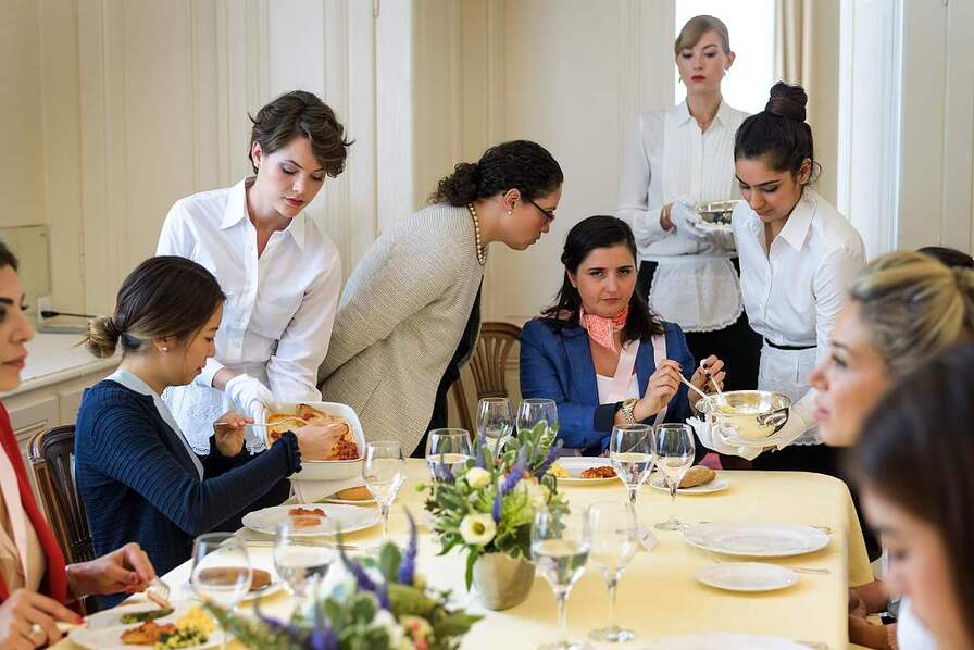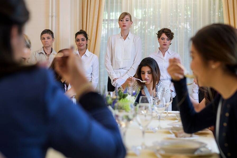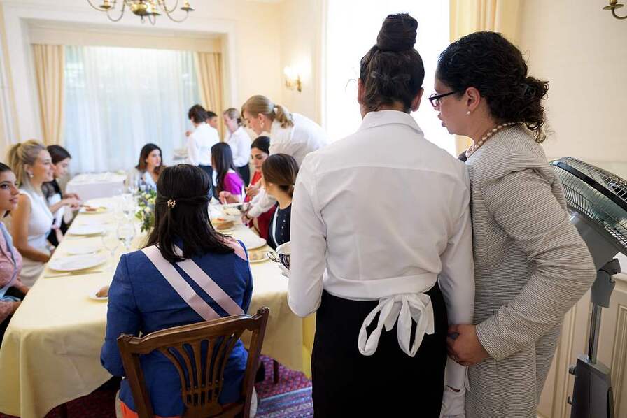 内里说,精修学校的主要生源曾经是欧洲人,后来是拉美人,接着是印度人、阿拉伯人和日本人。眼下这里俨然是一个“小联合国”,经常接待来自世界各地的学生。她们或为律师、顾问、企业家等行业翘楚,来这里寻求提升修养、增添女性魅力,或由身家丰厚的父母送来学习。学生们身份特殊,都不公开姓,师生和学生之间都以名相称。