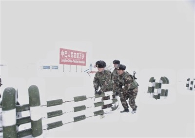 2017年1月25日,新疆塔县,红其拉甫边检站,官兵们正在推开护栏准备前往中巴边境,旁边是一块鲜亮的红牌子,“中巴人民友谊万岁”