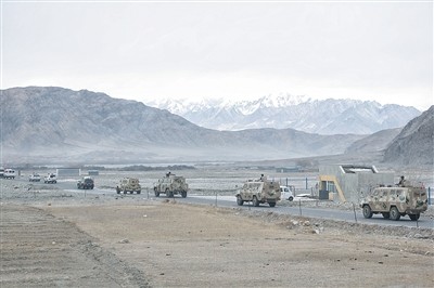 2017年1月24日,新疆塔县联合反恐演习,在演习中,出动80辆各类军用和警用车辆