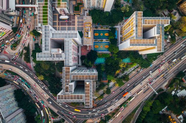 你可能还没垂直俯瞰过香港——繁忙却很有秩序。这里很像有“密集的黑暗之城”之称的九龙城。